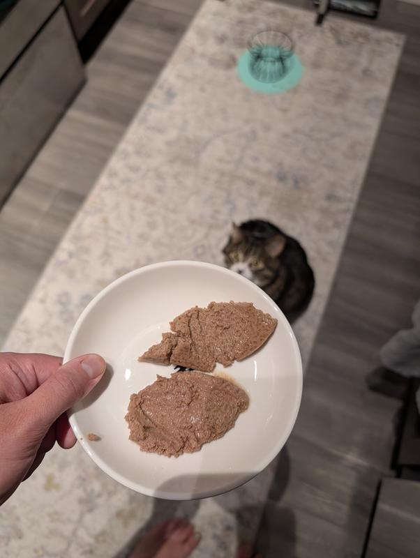 I loved the generous portion size of these cans- especially if you have multiple cats. Thankfully no bad smells either! I always have to add water to the food for my picky “fur”son, and this one was no different (does not have excess liquid)… but it was pretty easy to make into a “mousse” consistency vs some where they seem to repel the water being mixed. He ate some, but wasn’t scarfing it down (which is why I took one star off).