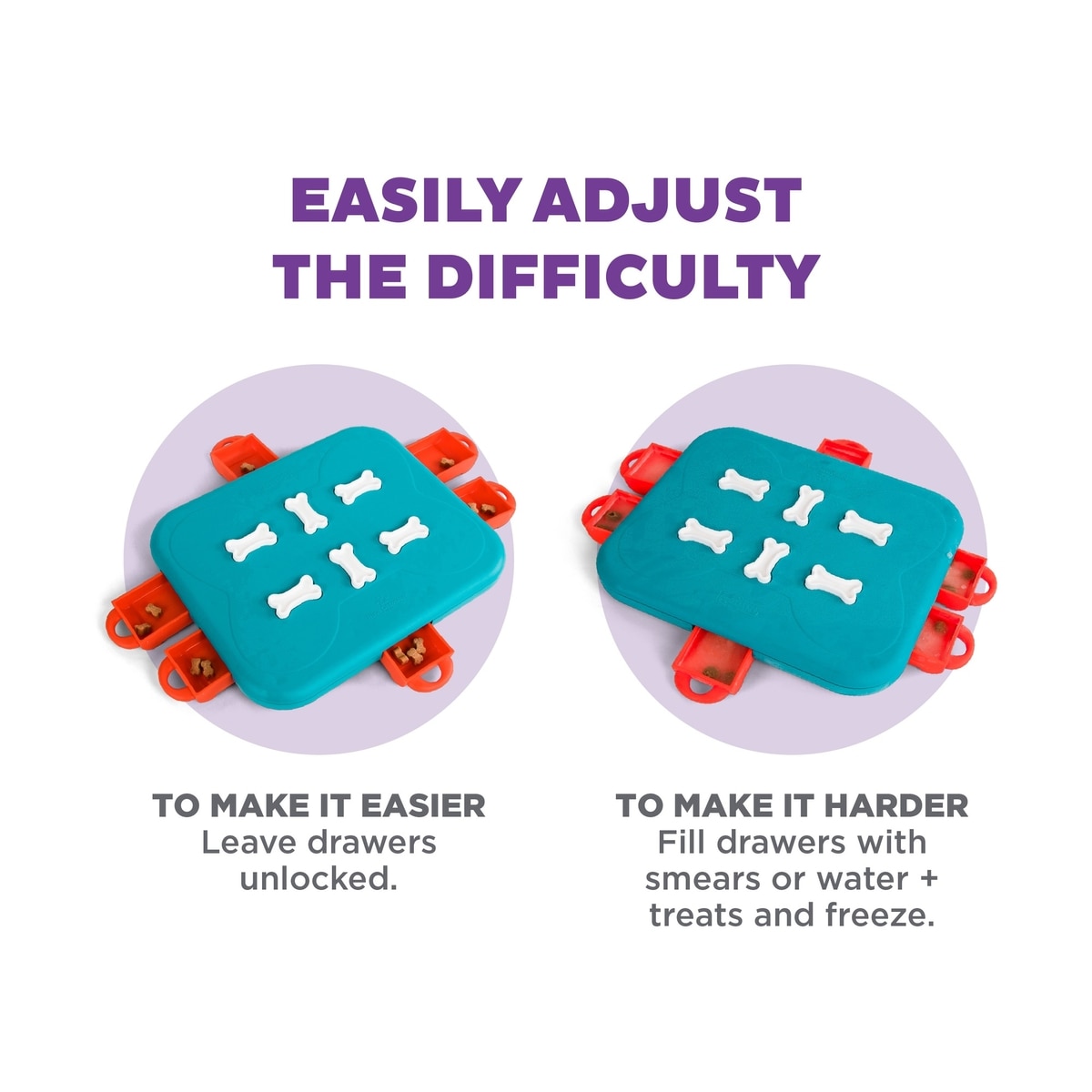 These advanced puzzles challenge your dog to complete several steps in order to reach the hidden treats.
