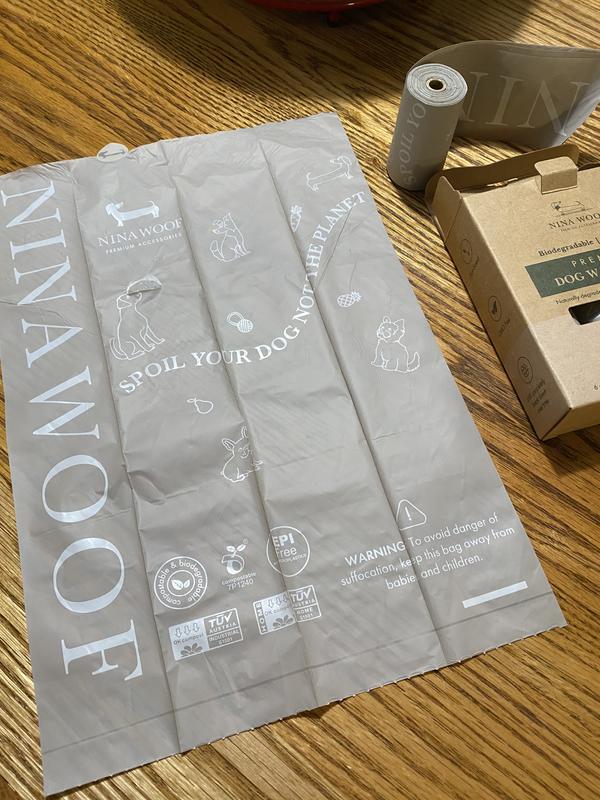 These bags are a bit larger than normal.. big enough for a man’s large hand. Soft feeling, not plastic but biodegradable. I’m a changed person and will be using these Nina Woof bags from now on!