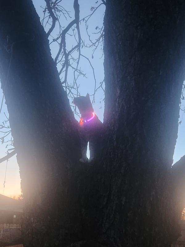 I put it on my cat at night since she likes to be outside. You can see her well when it is lit up. The issue I have is that the charge runs out very quickly. Doesn’t