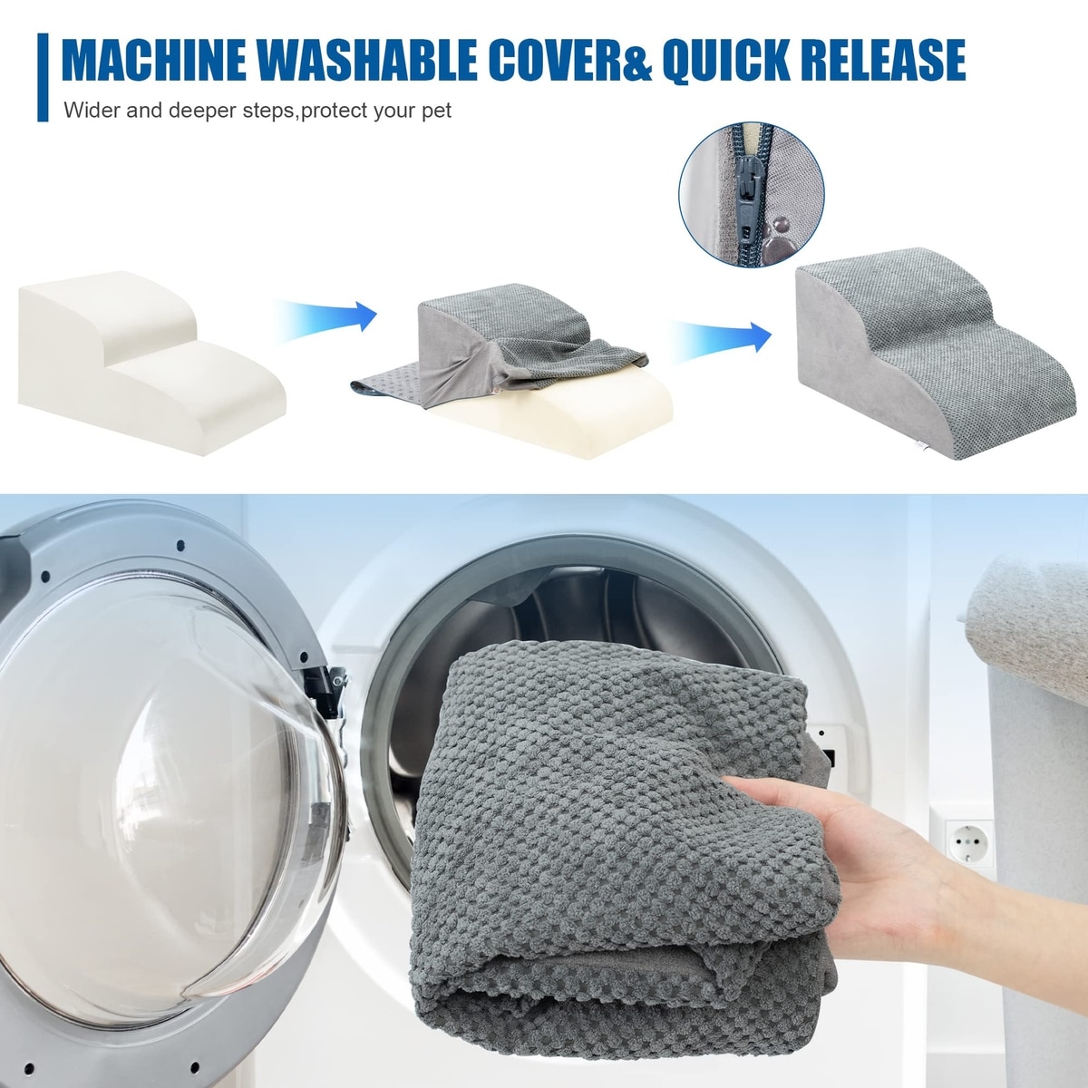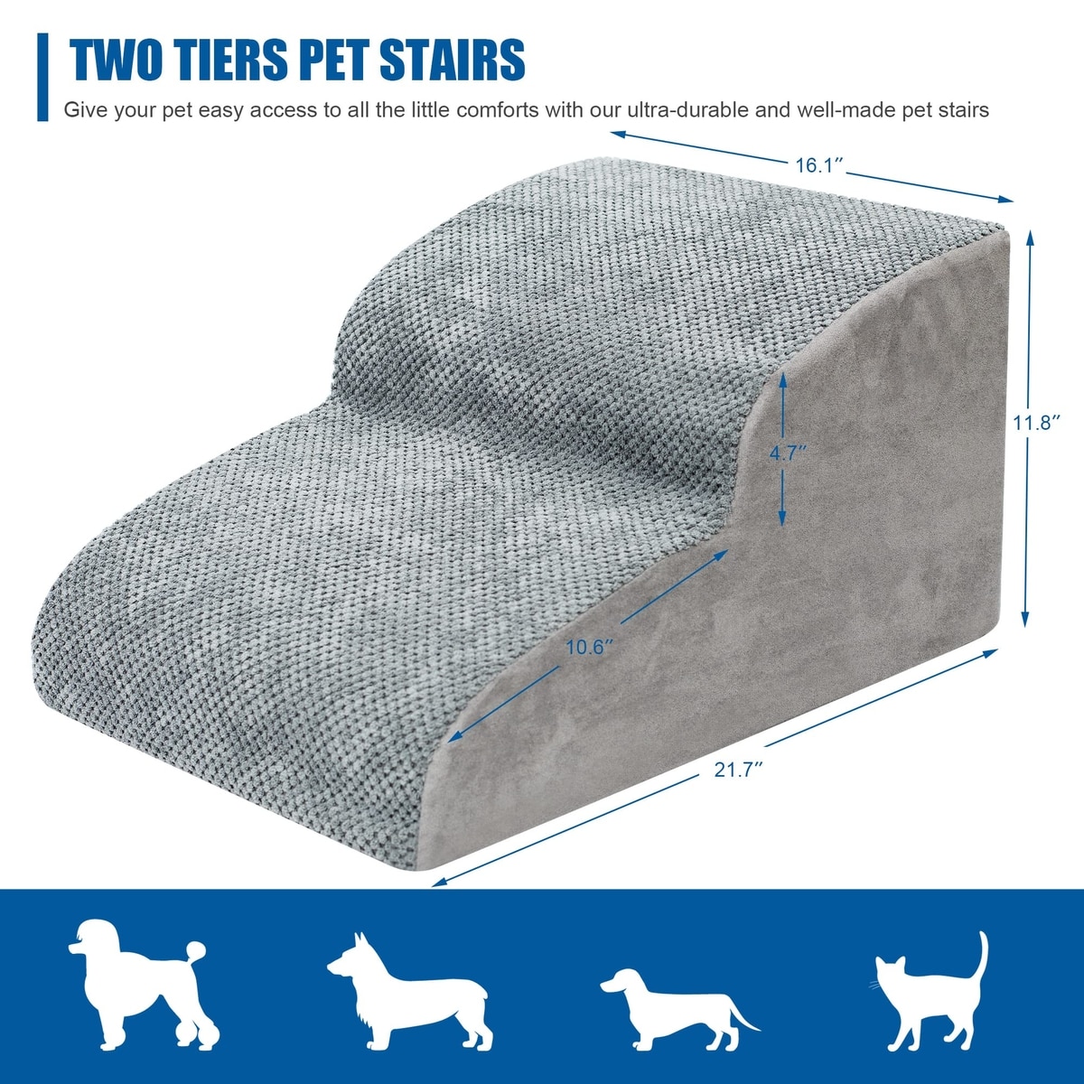 Niubya Extra Wide Foam Dog Stairs, Grey, 2 Steps