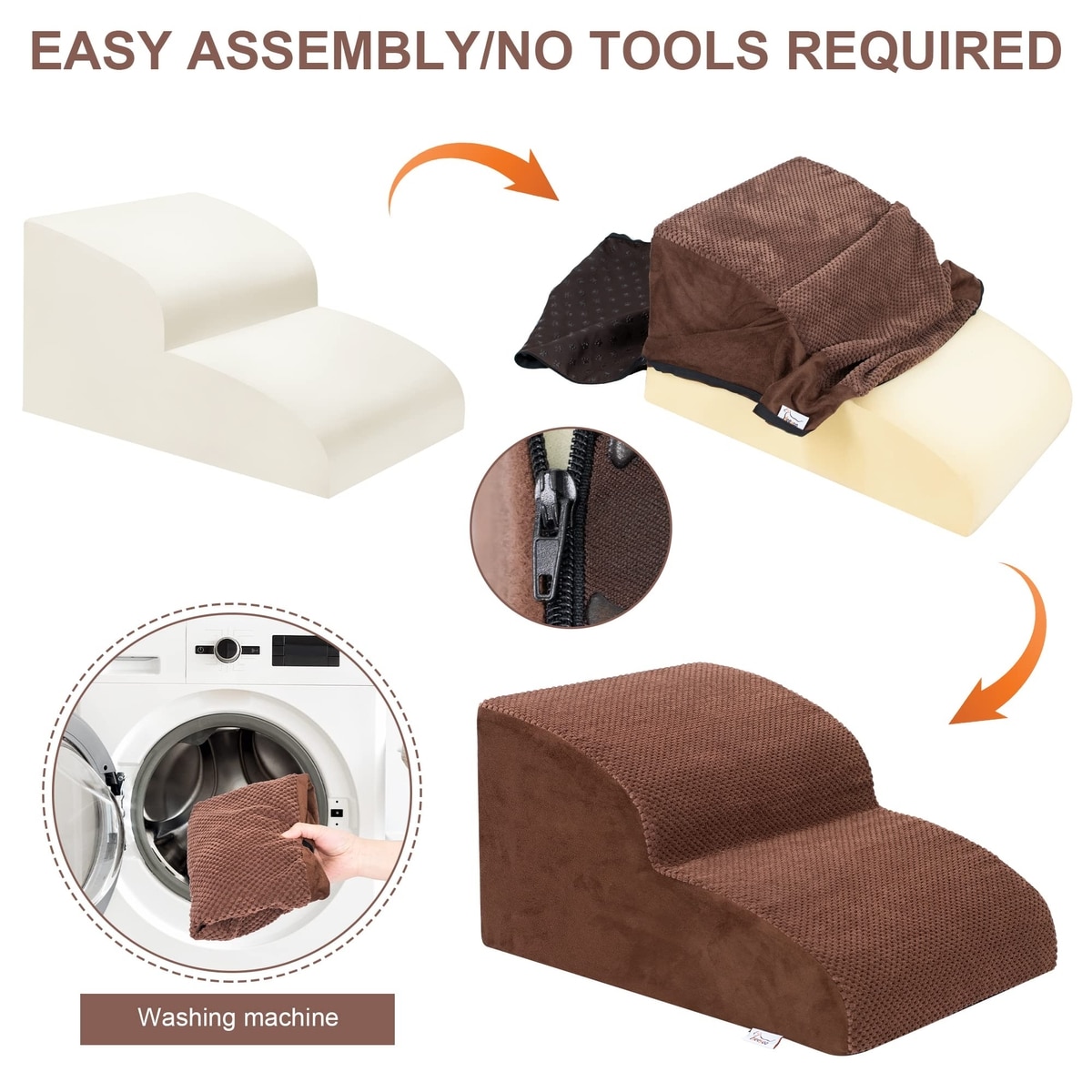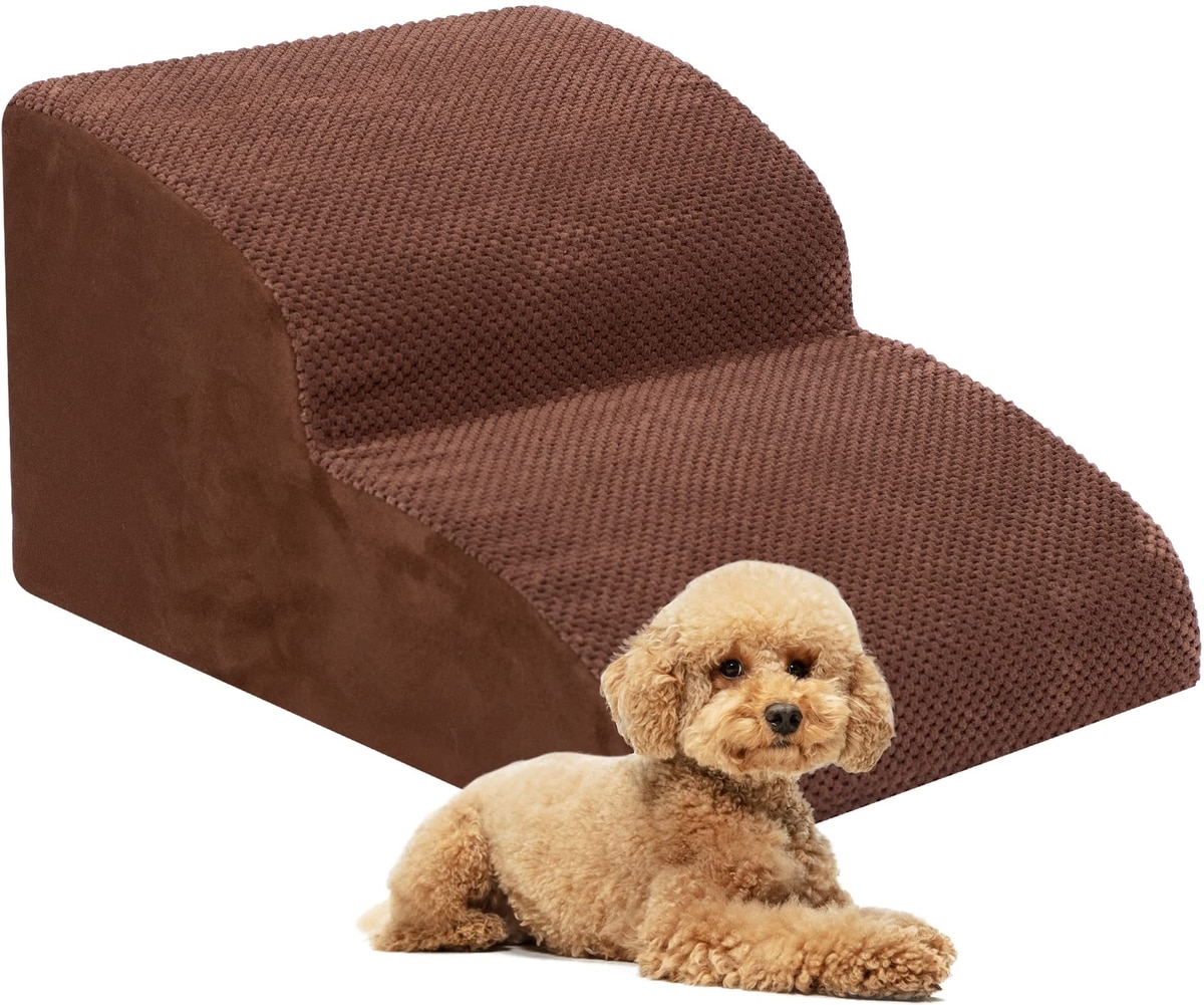 Niubya Extra Wide Foam Dog Stairs, Brown, 2 Steps