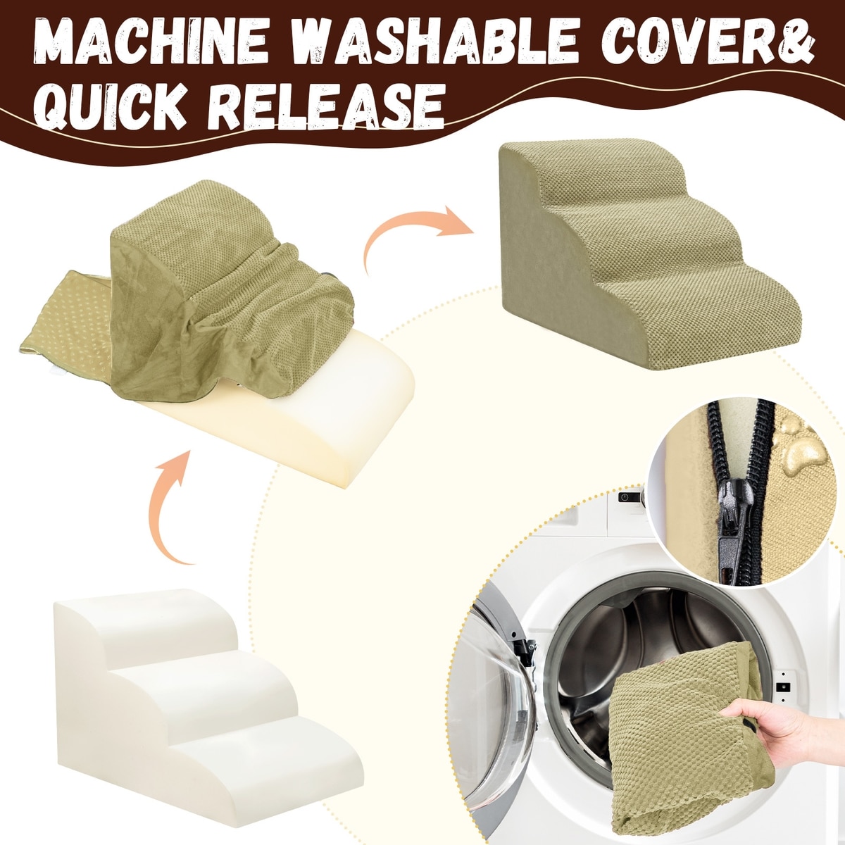 Niubya High Density Foam Extra Wide Non-Slip Bottom High Bed, Couch & Sofa Dog Stairs, Camel, 3 steps