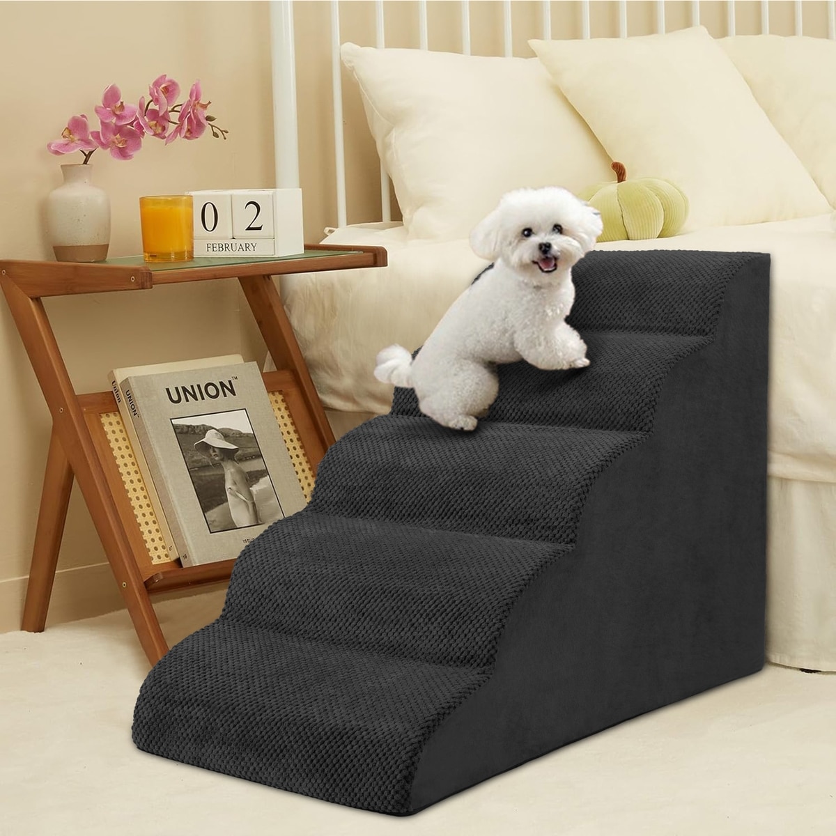 Niubya High Density Foam Extra Wide Non-Slip Dog Stairs, Black, 5 steps