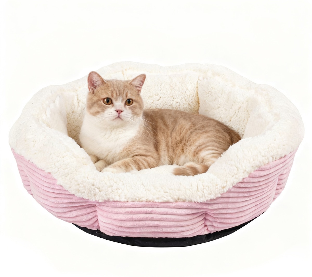 Niubya Round Indoor Furniture Style Sofa Dog & Cat Bed with Slip-Resistant Bottom, Pink