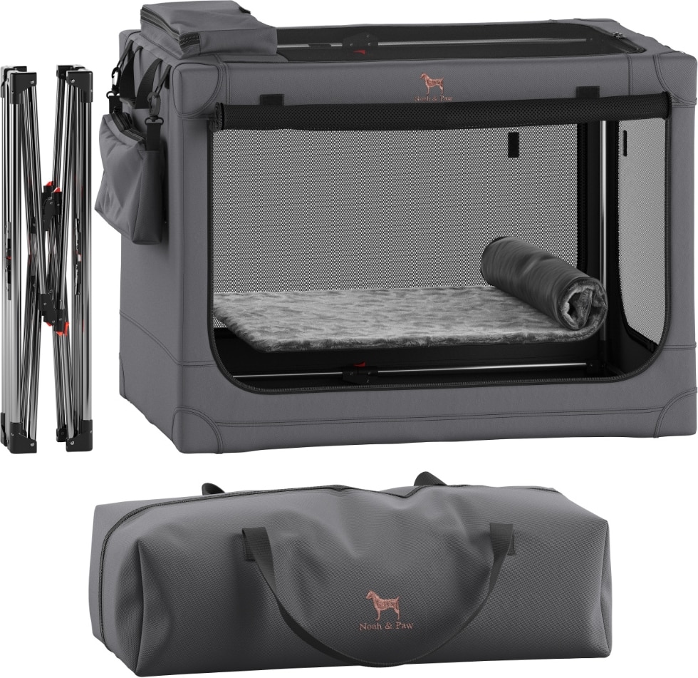 Noah & Paw Collapsible Soft-Sided Dog Crate, Grey, 30-in