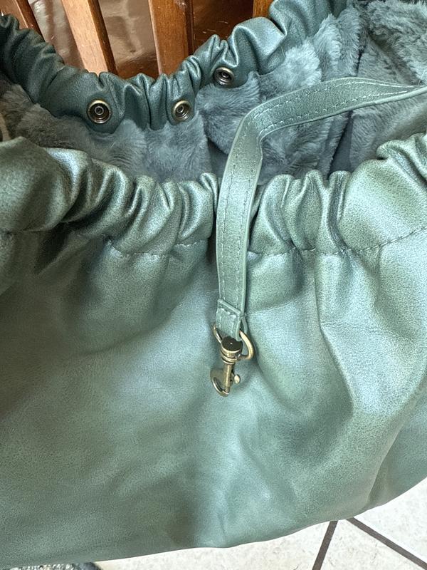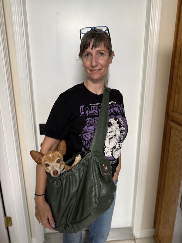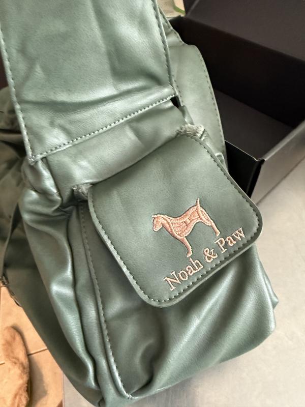 I’m so impressed with the Noah & Paw vegan leather small dog carrier. It’s incredibly soft and looks just like real leather—plus the green color is even prettier in person. The interior is lined with a fluffy faux fur that makes it super cozy and inviting for pups. The adjustable strap is a thoughtful touch, making it easy to carry while keeping my dog secure. There are also handy pockets on either side for small items like treats or waste bags, or even a cell phone! The quality is excellent—very sturdy and well made. My 20 lb. mini doodle fit perfectly inside and, to my surprise, was totally content being carried around, which is a first for her! I highly recommend this carrier to anyone with a small dog who needs or wants the option to carry them comfortably and stylishly.