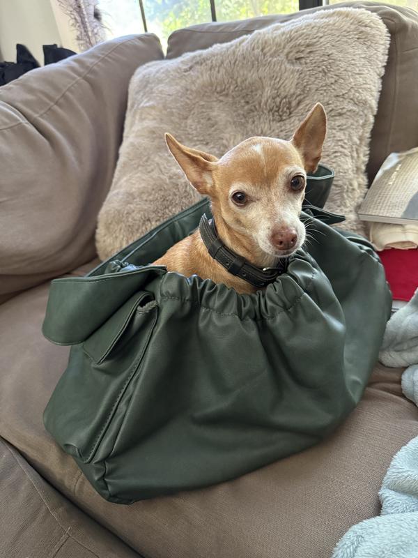 I’m so impressed with the Noah & Paw vegan leather small dog carrier. It’s incredibly soft and looks just like real leather—plus the green color is even prettier