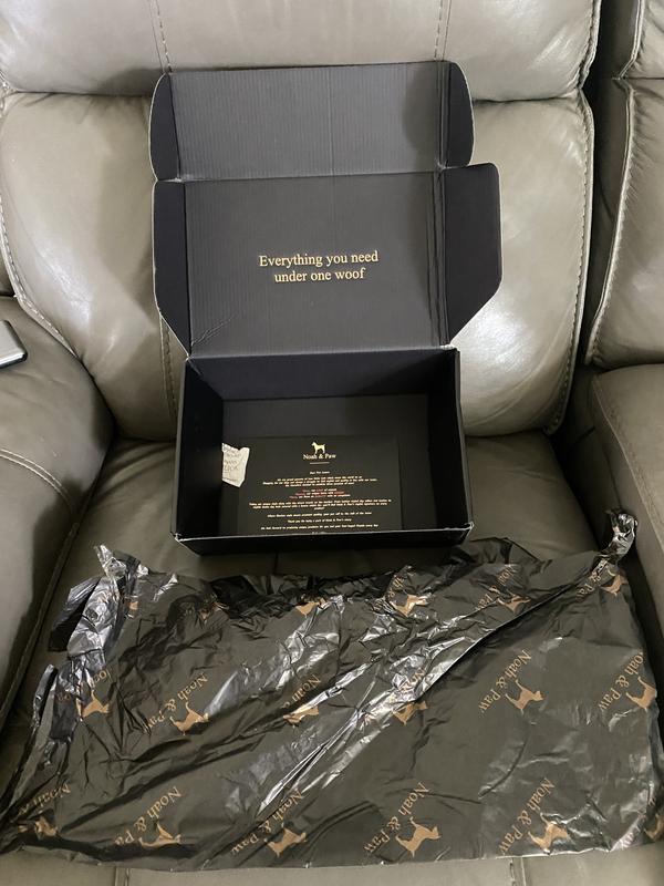 The Noah and Paw Vegan Leather Carrier was delivered with designer product packaging. The carrier is beautiful. It is soft vegan leather with a soft lined interior