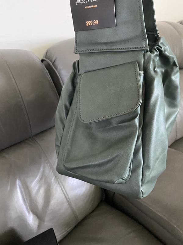 The product arrived very nicely packaged. The bag itself looks very high end. The green color is very nice. There are 2 pockets on either side to store some small