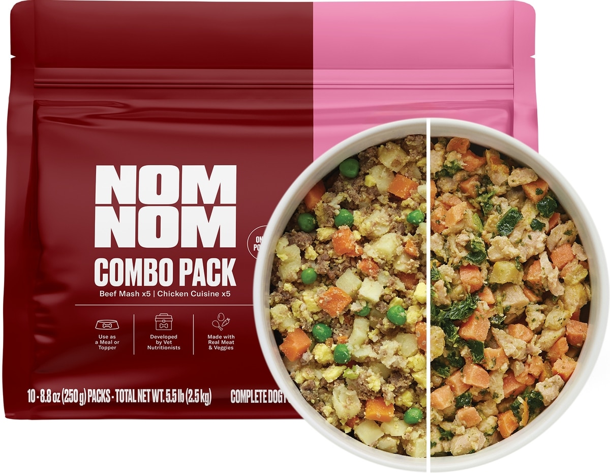 - DealNom Nom Freshly-Made Frozen Grain-Free Beef Mash Dog Food, 14-oz pouch, case of 7$73.94 Chewy Price$75.99 List Price$70.24 Autoship PricePromo, Spend $100, Get $30 eGift Card with code NEWYEAR +2 deals