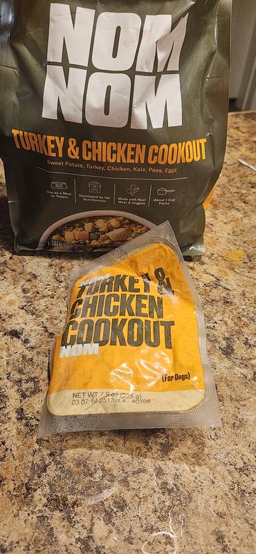 Nom Nom Freshly-Made Frozen Turkey & Chicken Cookout Dog Food, 14-oz pouch, case of 7