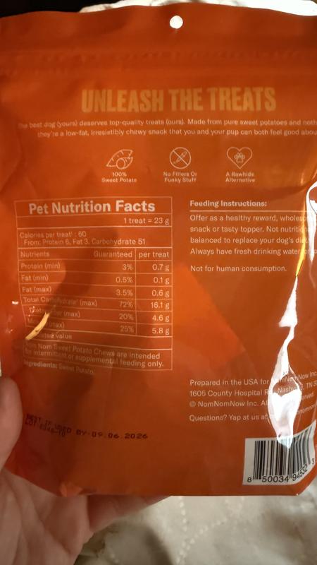Nom Nom Sweet Potato Chews Dehydrated Dog Treats, 6-oz pouch