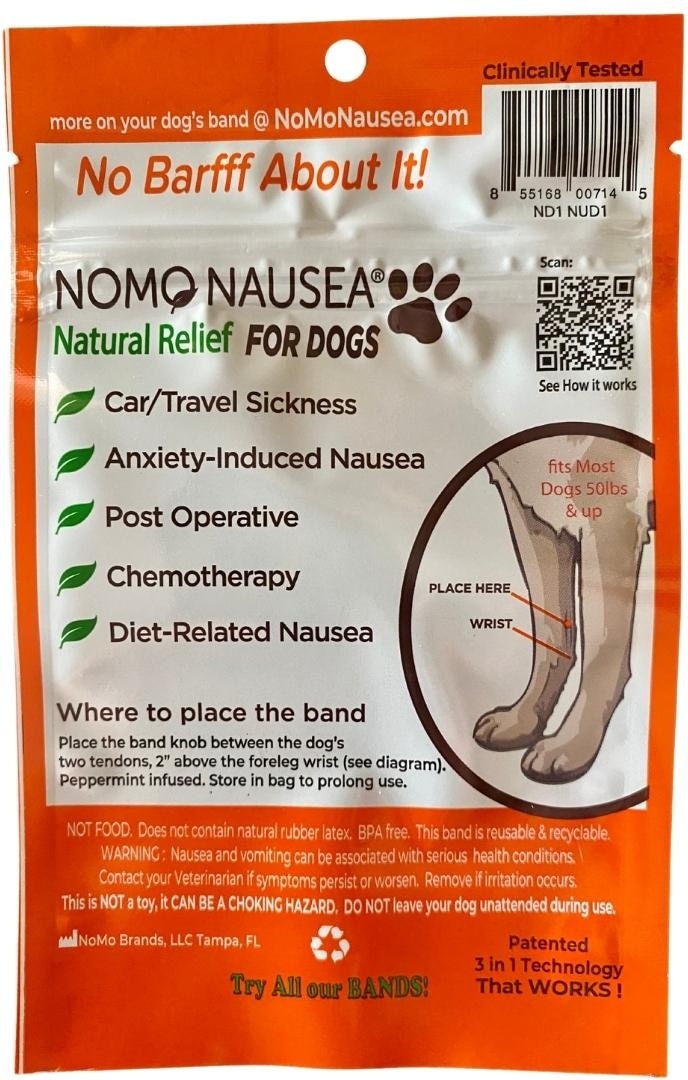 NoMo Nausea Bands Natural Nausea Relief Acupressure & Aromatherapy Dog Band
