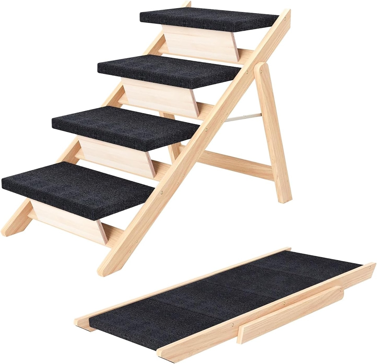 NonoPets 3-in-1 Non-Slip Foldable Wood Dog Stairs & Ramp, 4-Steps