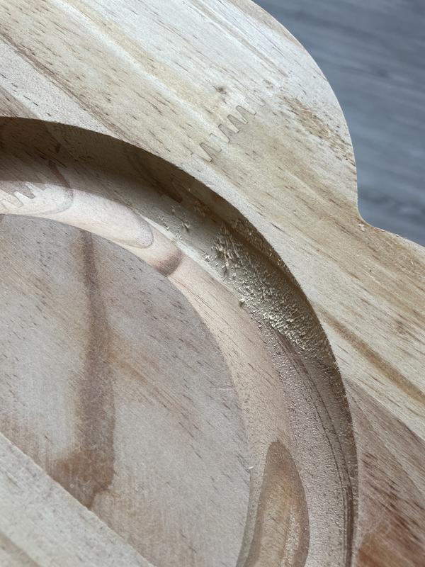 The quality is not very good. You see splinters and chipping wood right out of the box. It’s not very sturdy and wobbly. It is also very small and not worth the