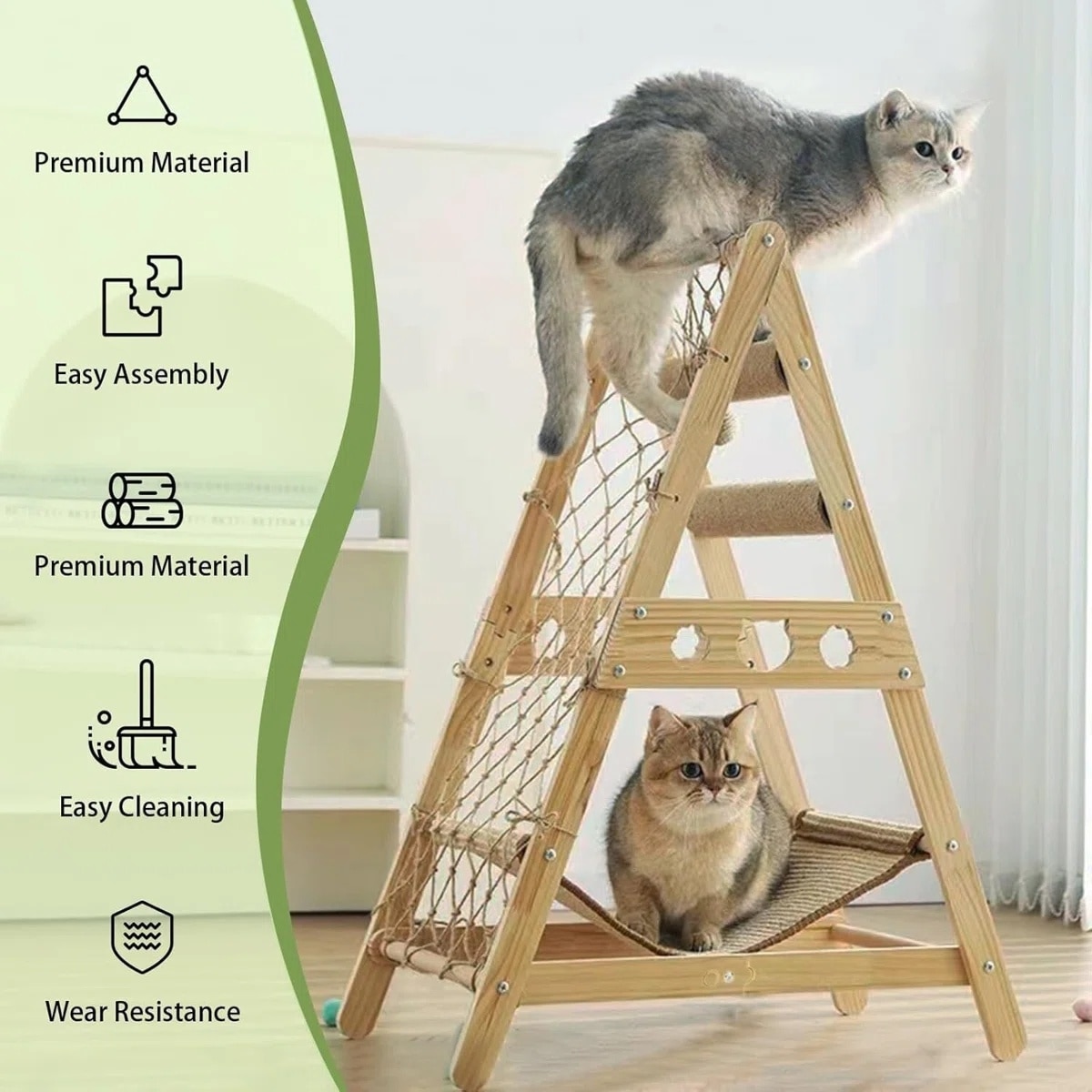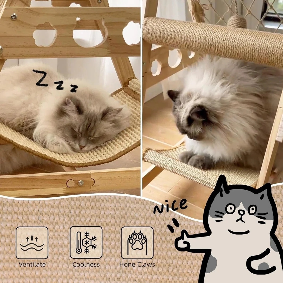 - Includes a natural sisal hammock which doubles as a scratching and sleeping surface.