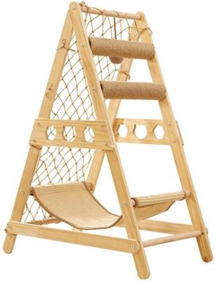NonoPets Indoor Cat Climbing Frame with Hammock Straching Post Climbing Web & Danging Sisal Ball, Beige, 25.59 x 15.75 x 33.46-in