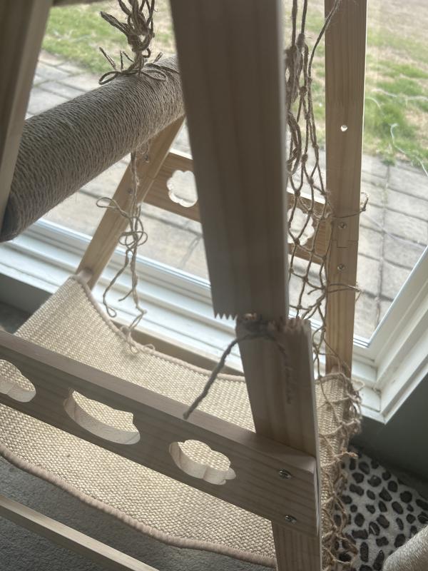 The scratching posts are longer than the wood posts so it is physically impossible to install properly, unfortunately defeating the purpose of this cat tree scr