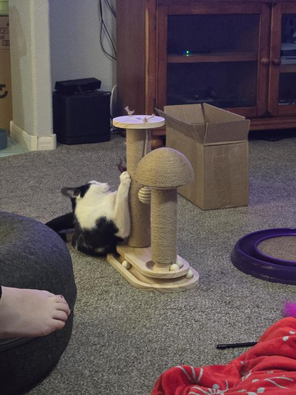 NonoPets Mushroom Sisal 16.3-in Polyester Cat Scratching Post with Teaser Toys, Beige