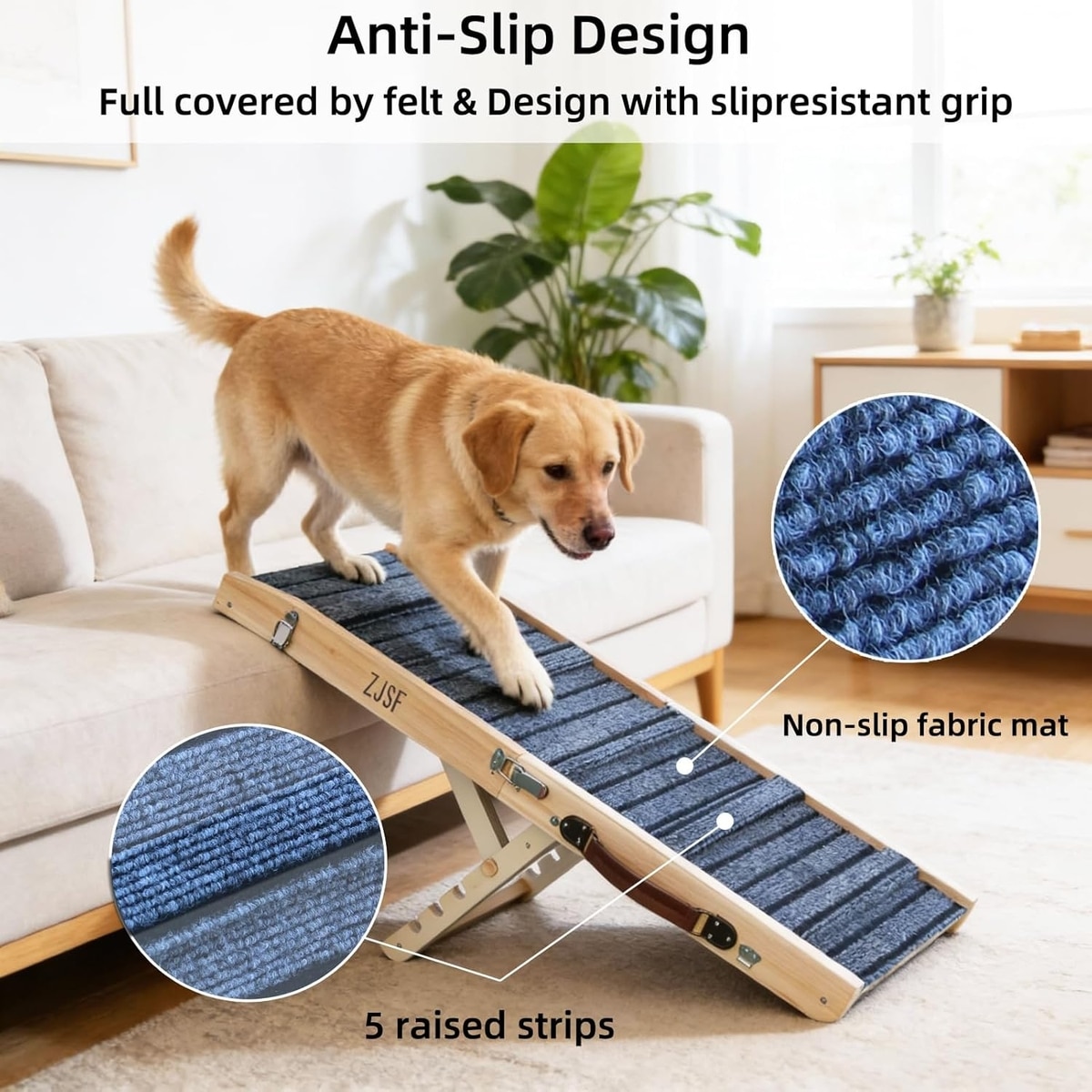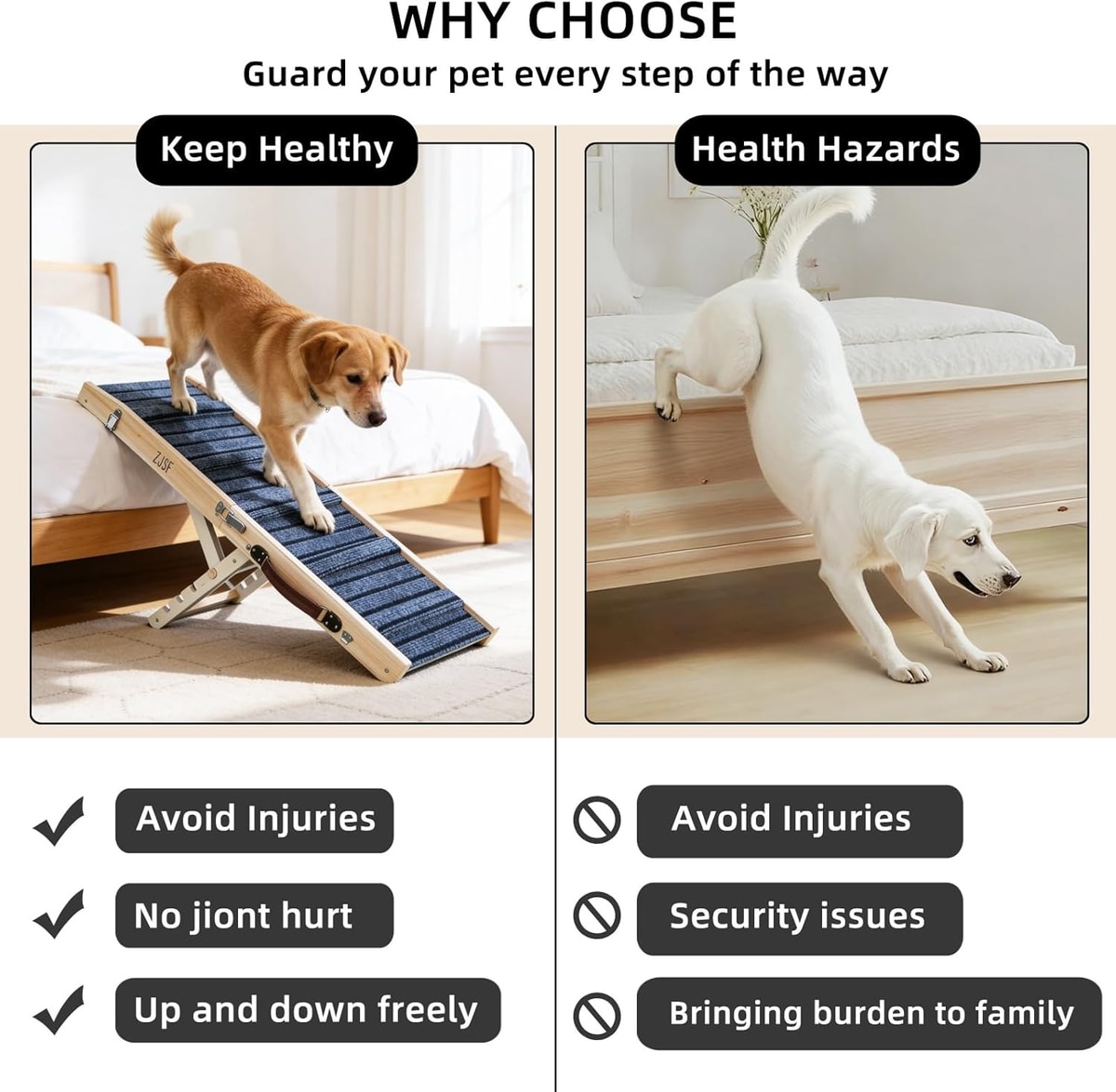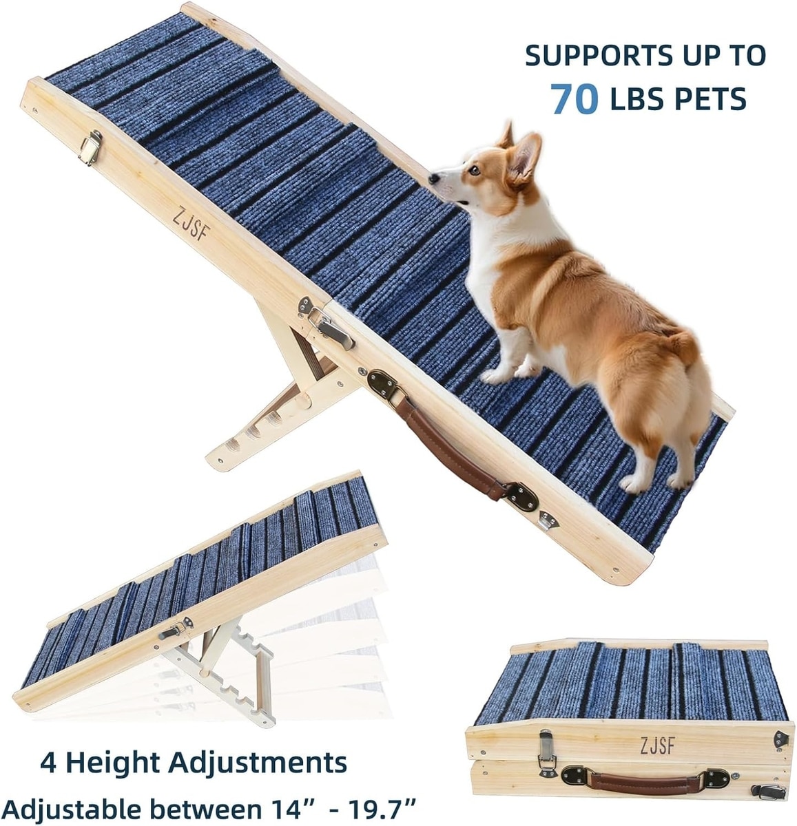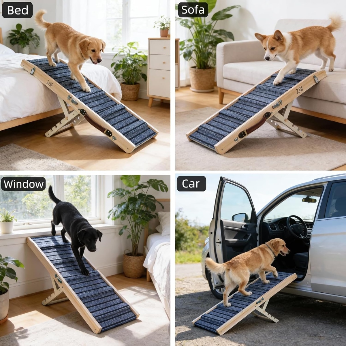 - This adjustable dog ramp helps pets safely reach low beds, sofas, and steps, reducing joint stress from jumping. It’s an essential tool for small dogs with short legs, injuries, or mobility needs.