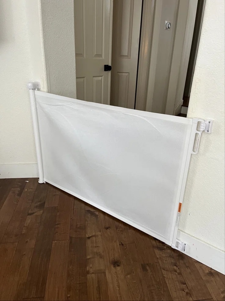 NonoPets Safe & Portable Barrier Adjustable Retractable Mesh Dog Gate, White, 71-in width