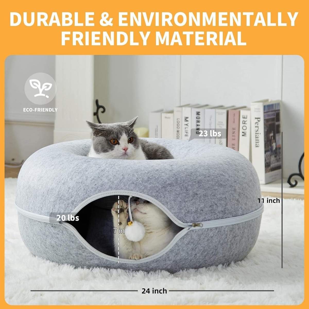 The felt material is environmentally friendly, durable, and odor-resistant; it’s also scratch-resistant and safe for your cat.