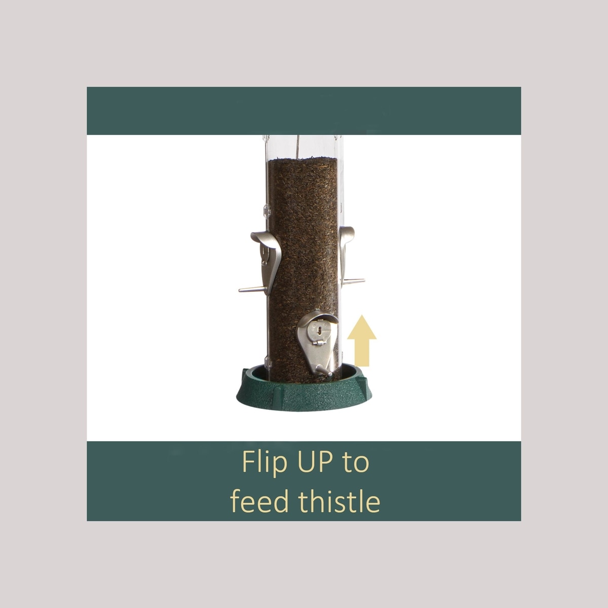 - 2-in-1 design easily converts to hold thistle or wild bird seed, so you can swap back and forth.