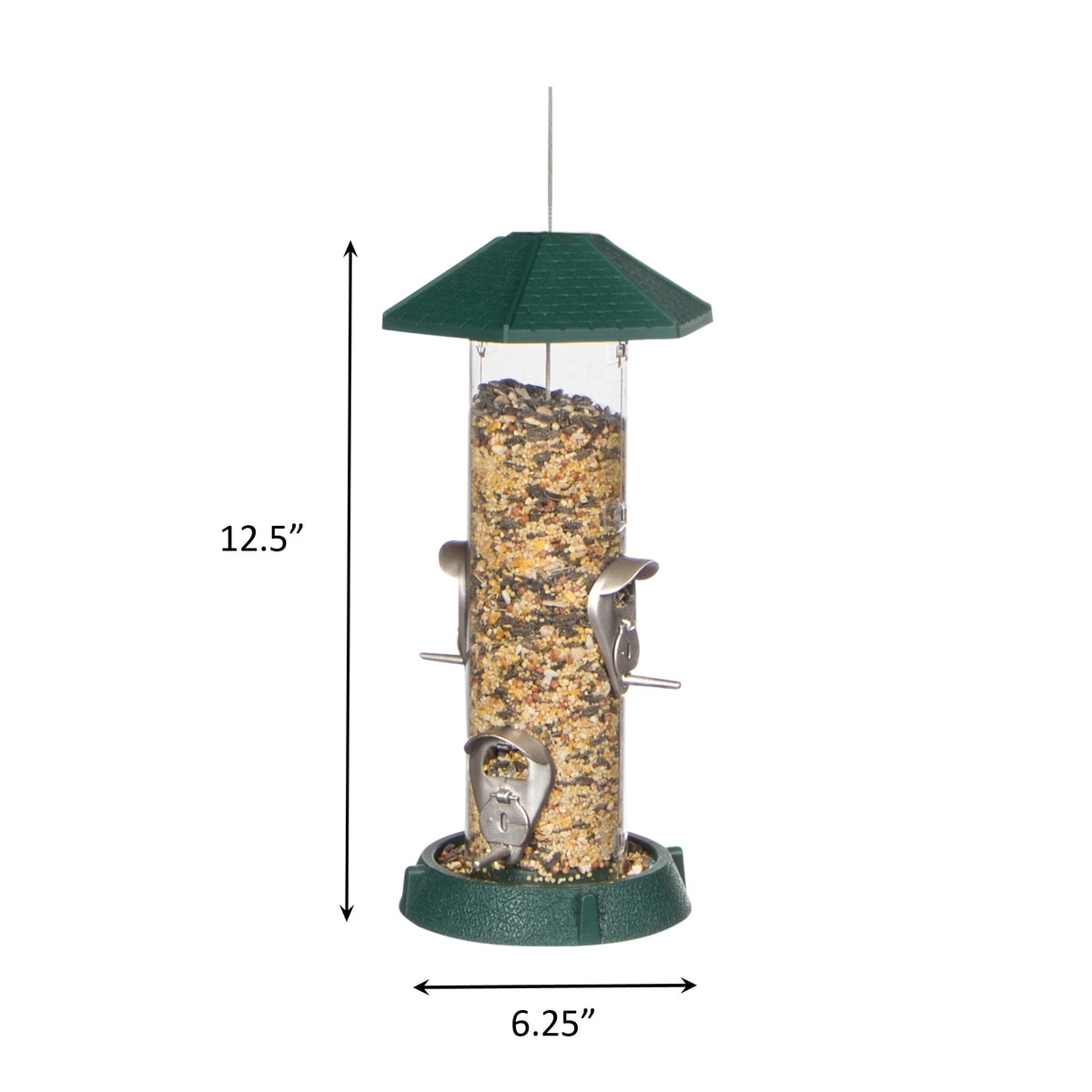 North States 2-in-1 Hinged-Port Bird Feeder, 4-Perch, Green