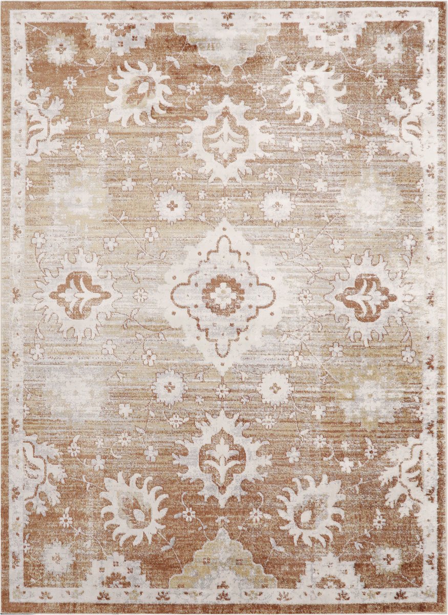 - This eye-catching rug features a vintage-inspired Persian-style design with a distressed finish.