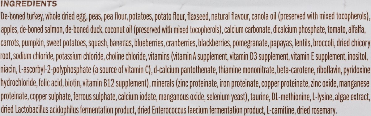 Fresh meat and fish: Made with de-boned turkey, salmon, and duck.