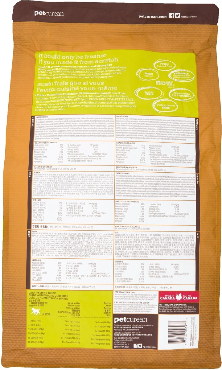 Created by Nutrition Experts Now Fresh small breed dry food features premium-quality small kibble designed for tiny teeth. It supports healthy digestion with probiotics and prebiotics and freshens breath with the natural power of parsley and peppermint.