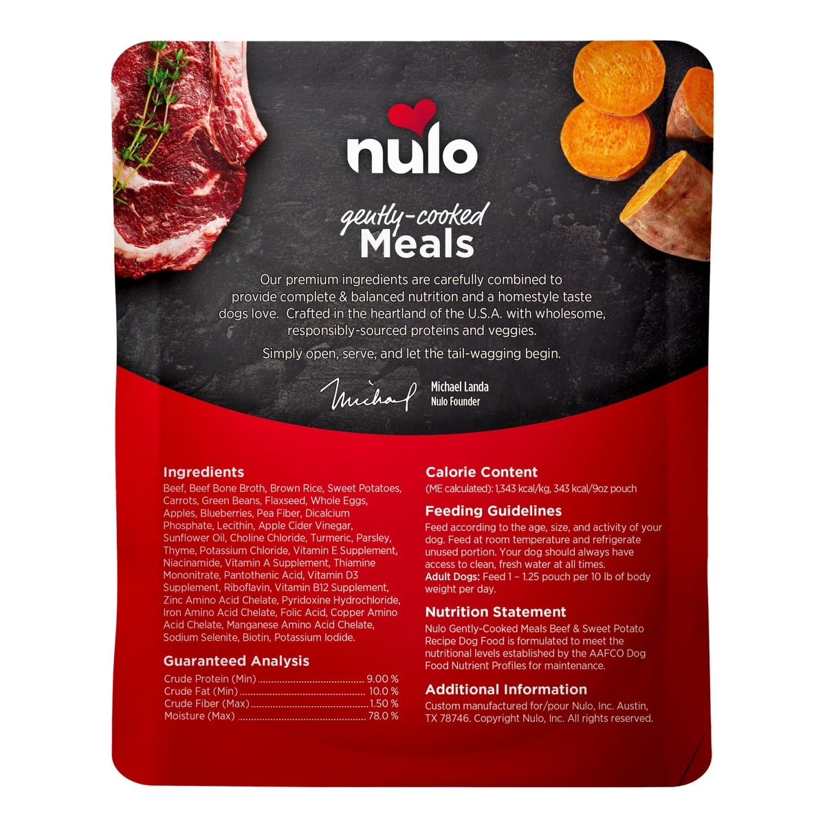 Nulo Gently-Cooked Meals Beef & Sweet Potato Recipe Wet Dog Food, 9-oz pouch, bundle of 16