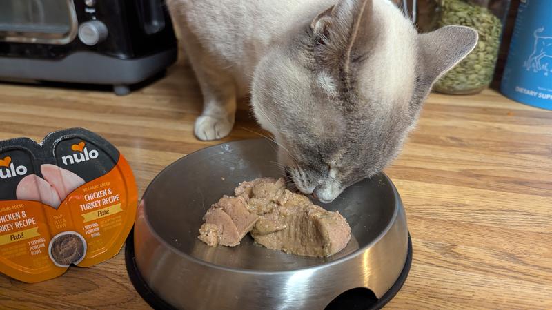 Our adult cat, Loki, ate Nulo Chicken & Turkey Grain-Free Pate Wet Cat food for lunch! He's now an honorary member of the Clean Plate Club! Loki is a finnicky cat who carefully sniifs any new food that he's presented. If it doesn't past the "smell test", he won't dare taste it. With Nulo he dove right in and devoured it all in one sitting! Another first, Loki returned twice to his bowl to lick it clean... when it already was clean! If you're having difficulty finding a wet cat food that your "finnicky" cat will love, I'd suggest Nulo wet cat food. My guess is you won't go wrong.