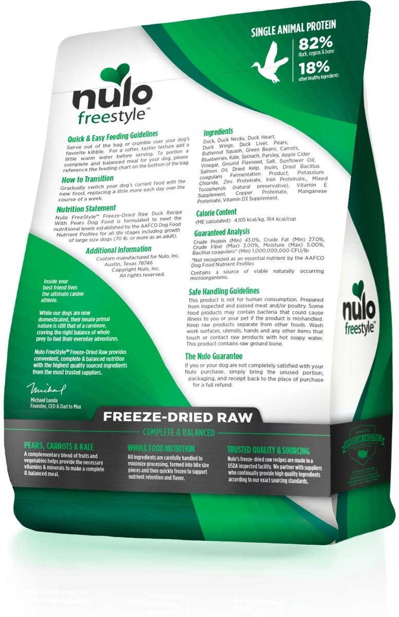 Nulo Freestyle Duck Recipe with Pears Grain-Free Freeze-Dried Raw Dog Food, 5-oz bag