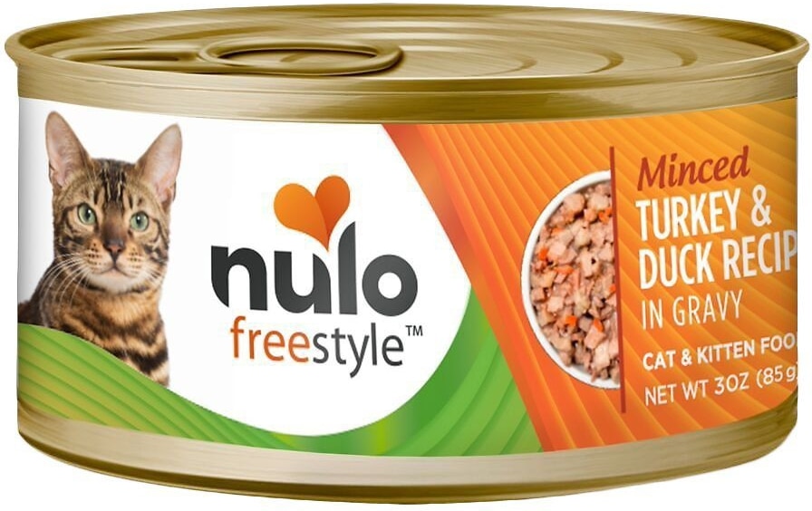 - Nulo Freestyle Minced Salmon & Turkey, Minced Beef & Mackerel, Minced Turkey & Duck Grain-Free Variety Pack Canned Cat Food, 3-oz can, case of 12$21.48 Chewy Price$20.41 Autoship PricePromo, New Customers Only: Spend $49+, Get $20 eGift Card