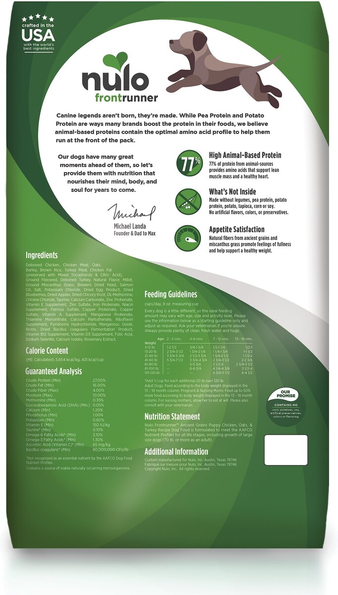 Nulo Frontrunner Ancient Grains Chicken, Oats & Turkey Puppy Dry Dog Food, 23-lb bag