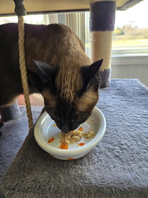 Most of my 6 kitties ate this food. One completely turned their nose up at it. A few did eat some but ended up leaving quite a bit in their bowls. Especially the rice grain pieces. I really liked how much food was in each pouch. There was easily enough to split between 3 cats as a treat or food topper. I think this would be a good option to keep on rotation but there are definitely other foods they enjoy much more.