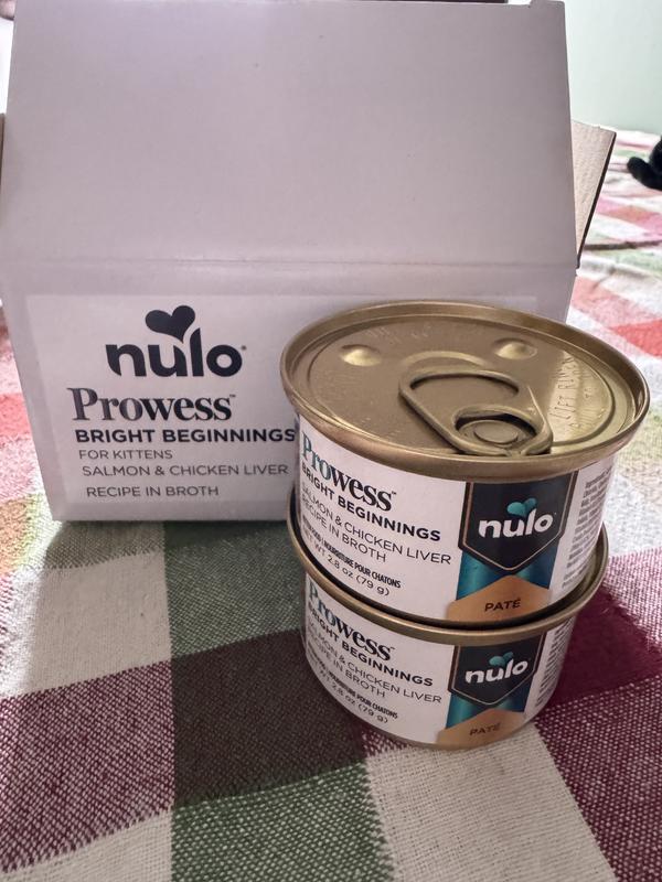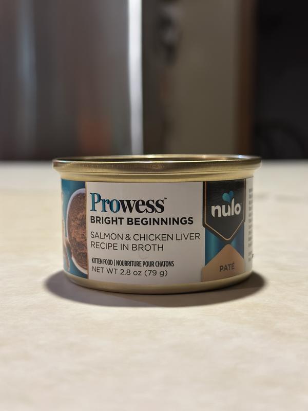 Nulo Prowess Bright Beginnings Salmon & Chicken Liver Pate in Broth Kitten Wet Cat Food, 2.8-oz can, case of 4