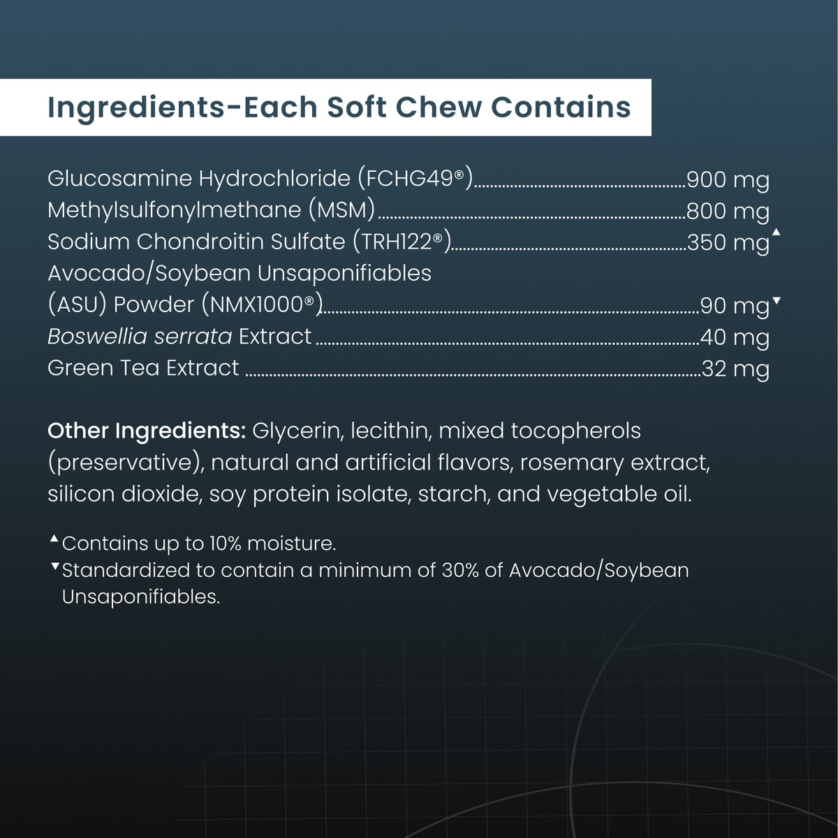 Dasuquin stands apart from standard glucosamine and chondroitin supplements with its unique combination of ingredients including avocado/soybean unsaponifiables, or ASU.