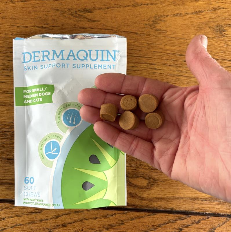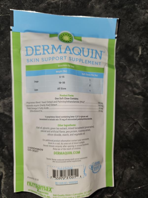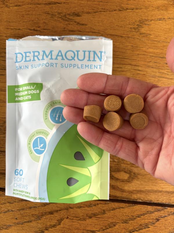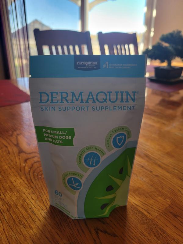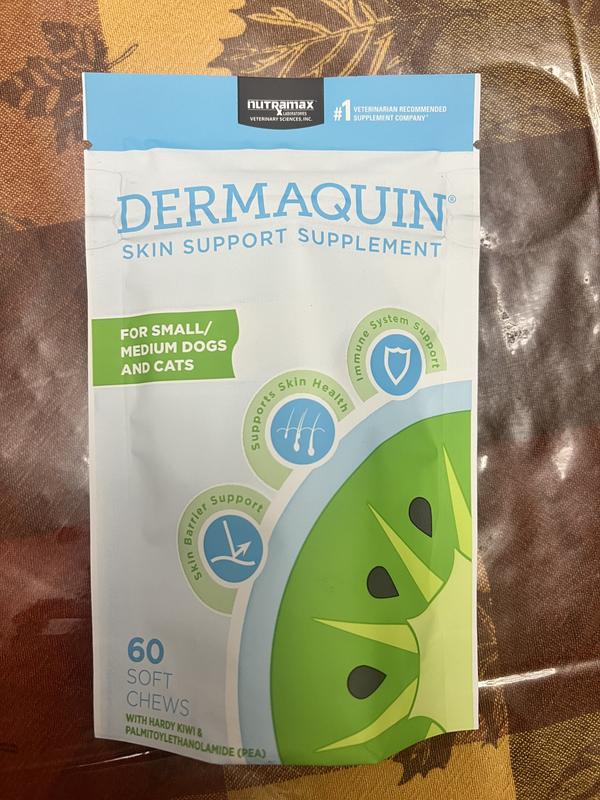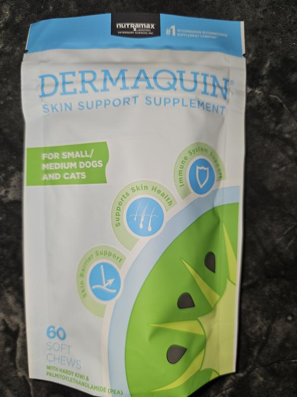 Nutramax Dermaquin Skin Support Vitamins Chew Supplement for Small & Medium Dogs & Cats, 60 count