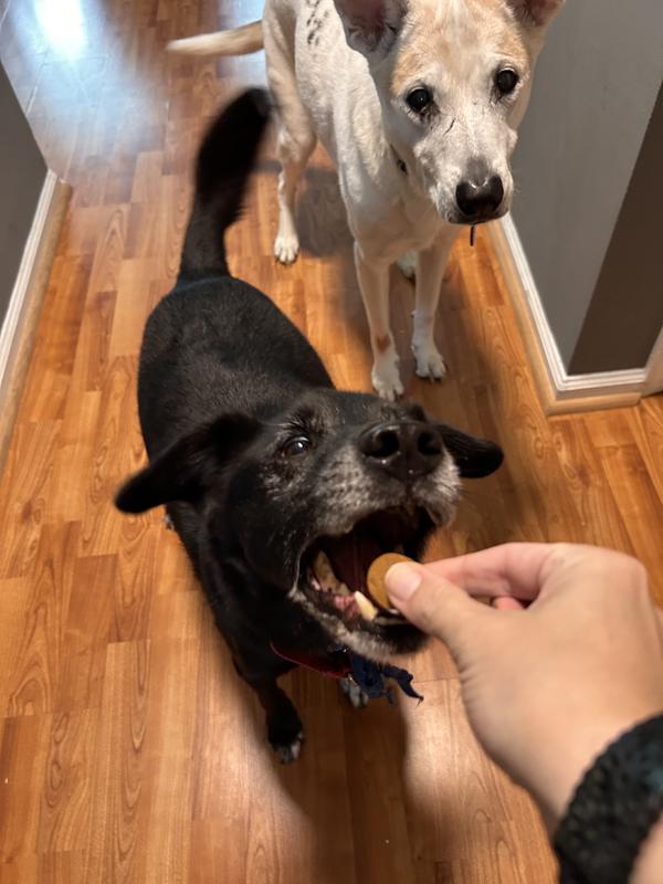 My dog was a bit iffy on the taste or smell of these and kept picking the first one up and dropping it. He eventually did eat it and asked for another. So far he seems to like them. Too early to tell if there are any benefits. One thing I’m not pleased with, the packaging says soft chew and these are not the least bit soft. So if you have an older dog who’s teeth bother them you might want to pass on these.