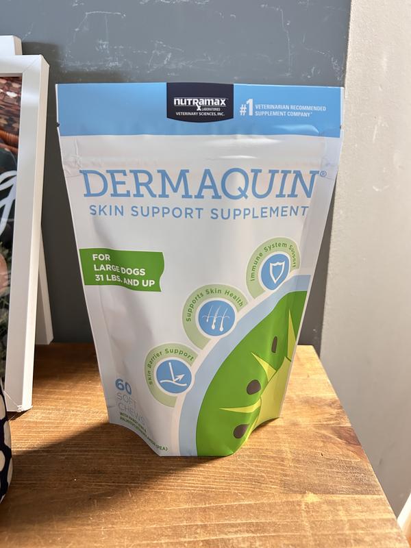 My dog has severe skin allergies and is on prescription medication, so when I learned about this product, I decided to try it. I know that supplements from NUTRAMAX are outstanding, so I felt confident in giving them a try. And it's been about a week, but they do seem to be helping (less licking of his paws, etc). In fact, just today I cut his prescription medication in half. Between the cold weather and the Dermaquin, I'm hopeful he will do better--or at least as well as with the full dose of the prescription medication.