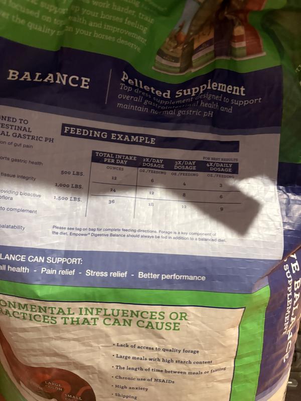 Choose supplements formulated for your horses’ specific needs to improve health and performance. Empower Boost contains a special blend of fat and select nutrients to help horses work harder, train longer and perform better. Empower Topline Balance is designed to round out nutrition from good quality forage or pasture with essential amino acids, vitamins and minerals. Or try Empower pelleted top dress supplement to help maintain normal gastric pH and support overall gastrointestinal health.