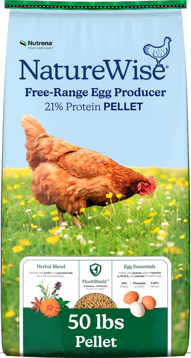Nutrena NatureWise poultry feeds are created using integrated technology to provide the most nutritionally advanced diet. They source natural ingredients along with vitamins, minerals, essential oils and amino acids, then craft formulas designed to promote good digestion and overall health.