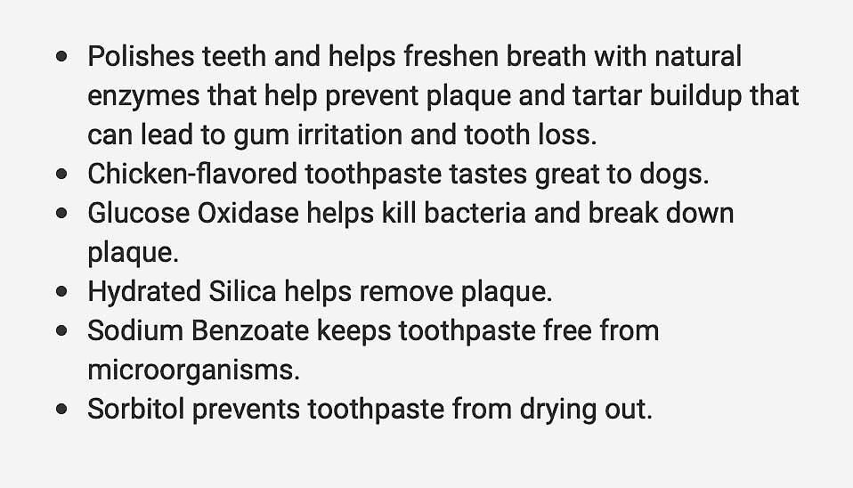 I’ve used this toothpaste since my baby was 5 months old. His breath is always fresh :) I brush his teeth daily with this (ok, I might skip a day sometimes, but he gets his dental chews, too). Chewy has, hands down, the best price! My local pet store carries this same toothbrush and toothpaste set for $15. Thanks to chewy, I get the best products for my boy and save money. Thank you, Chewy! We will continue shipping on this site for most of our needs.
