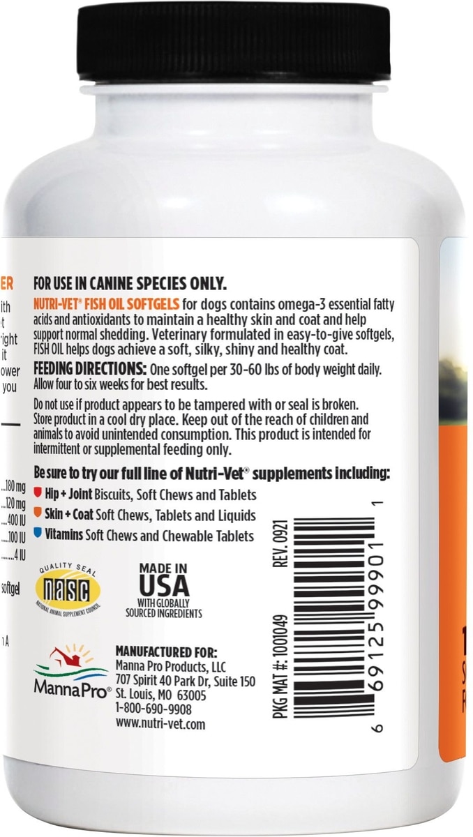 Nutri-Vet Fish Oil Softgels Skin & Coat Supplement for Dogs, 100 count