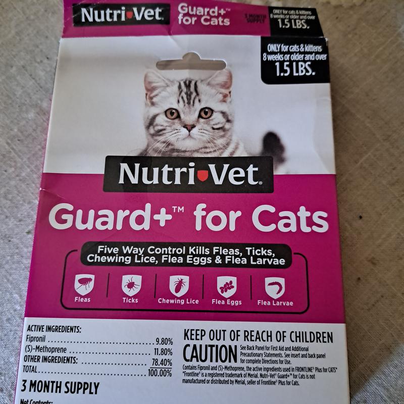 Nutri Vet Guard Plus for Cats was used on 2 neighborhood strays I care for here in Florida. It is so expensive to get flea control so I'm not always able to buy