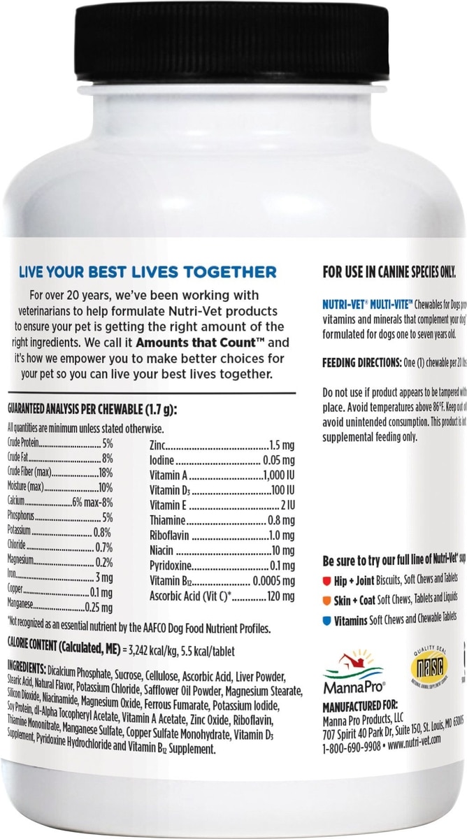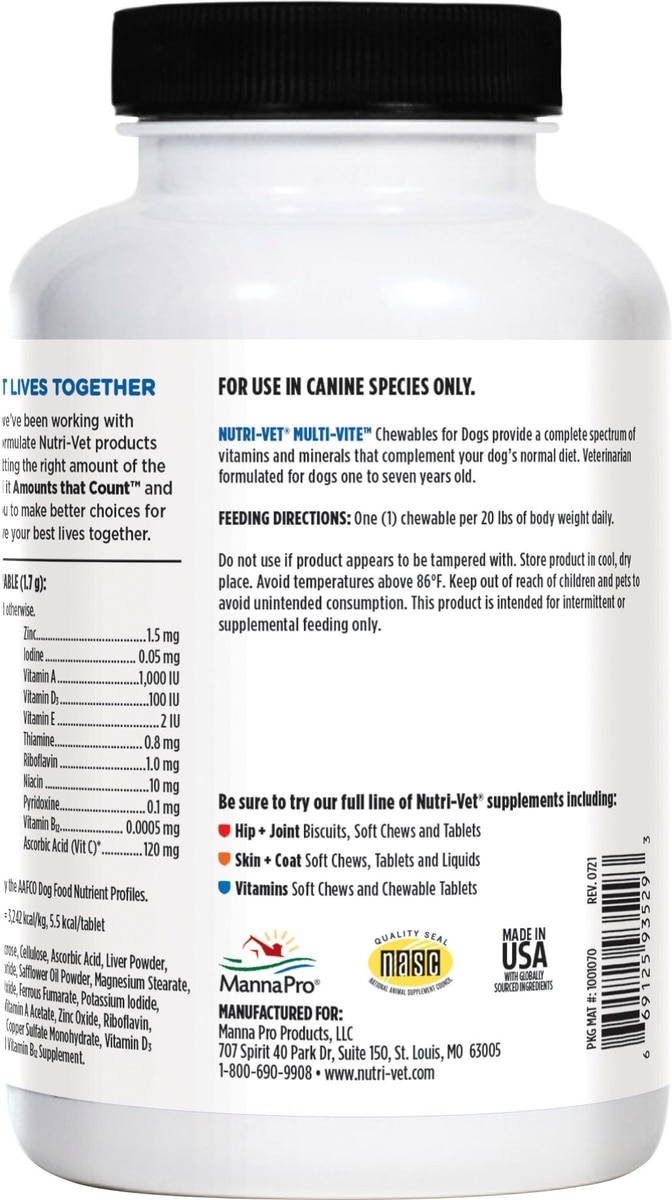 Nutri-Vet Multi-Vite Chewable Tablets Multivitamin for Dogs, 180 count