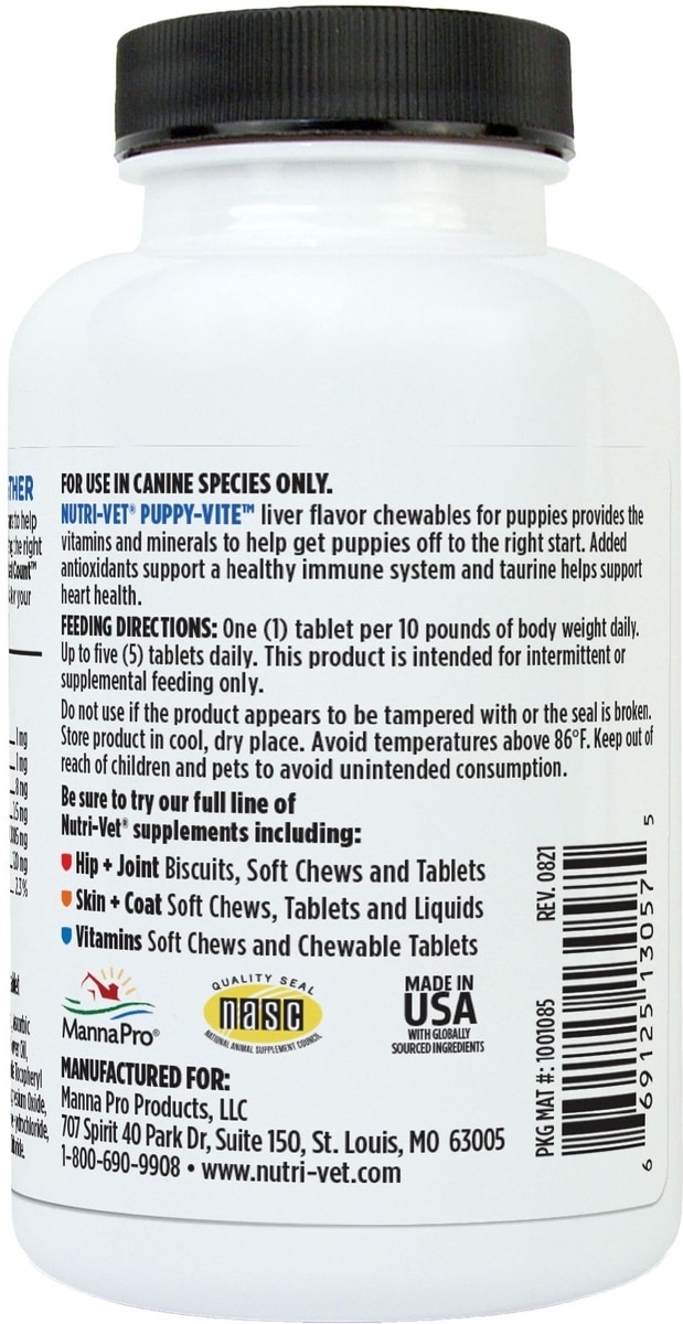 Nutri-Vet Puppy-Vite Chewable Tablets Multivitamin for Dogs, 60 count